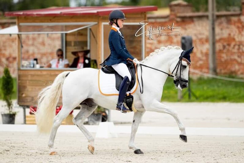 Europees Kampioenschap Terwijl het Nederlandse ponydressuurteam met de zilveren teammedaille overall het meest complete team van Europa was met het hoge streep-resultaat van maar liefst 74,275%, hebben de Nederlandse ponyruiters het in de individuele strijd nèt niet gered voor individueel eremetaal. Micky Schelstraete (Gemonde) was met Elin’s Noncisdador twee keer de beste Nederlandse combinatie en viel na een nagelbijtende Kür net naast…- 1
